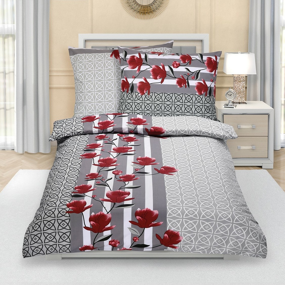 Obliečky na paplóny a vankúše: Bellatex Bavlnené obliečky Krík na sivej, 140 x 220 cm, 70 x 90 cm, 140 x 220 cm, 70 x 90 cm