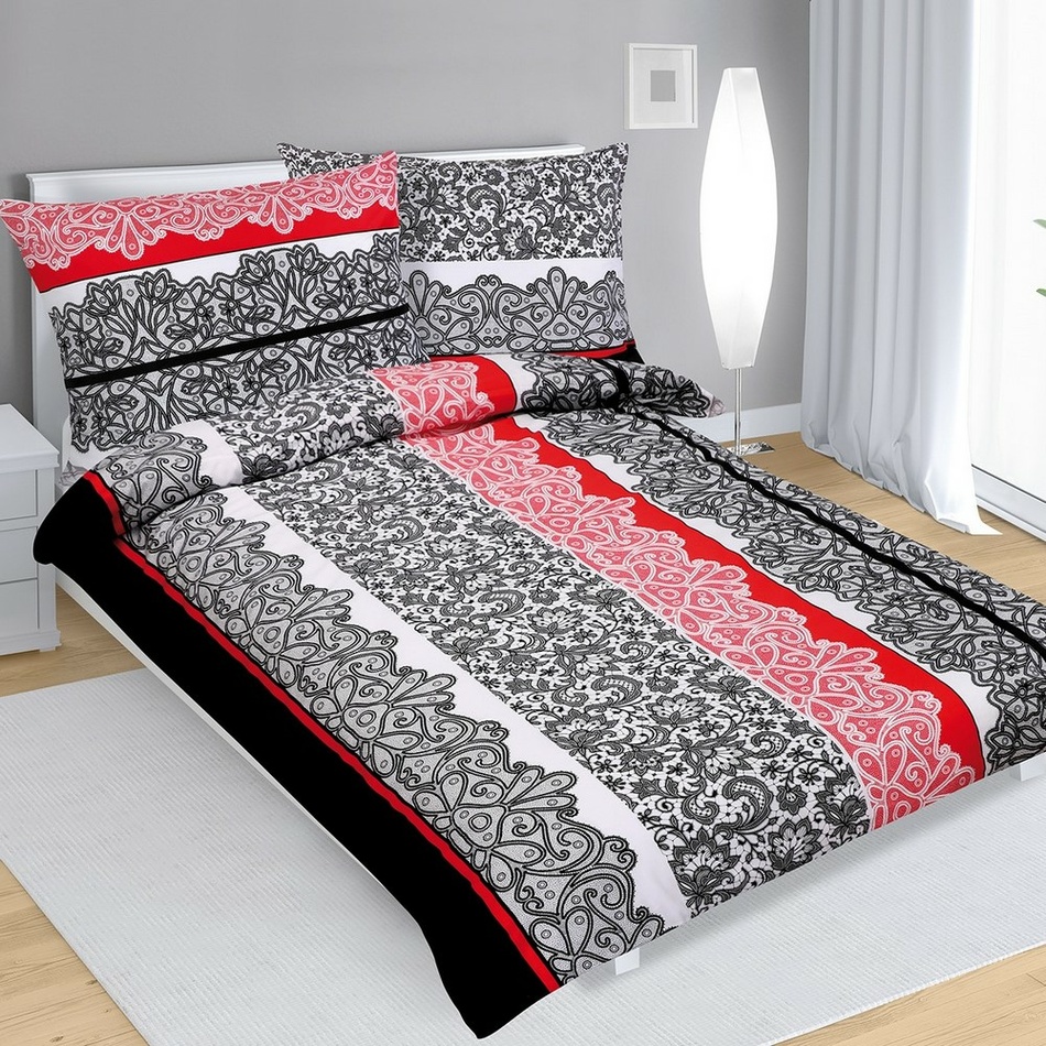 Obliečky na paplóny a vankúše: Bellatex Bavlnené obliečky Čipka čierno-červená, 140 x 220 cm, 70 x 90 cm