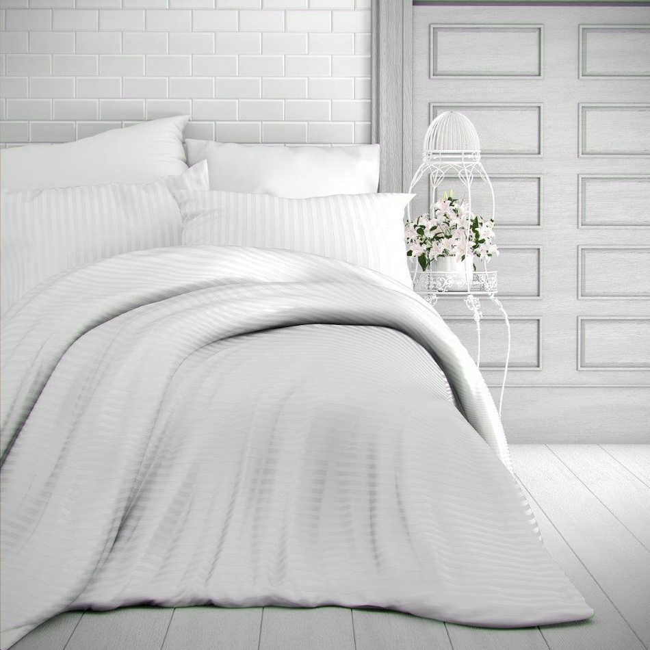 Obliečky na paplóny a vankúše: Kvalitex Saténové obliečky Stripe biela, 140 x 220 cm, 70 x 90 cm